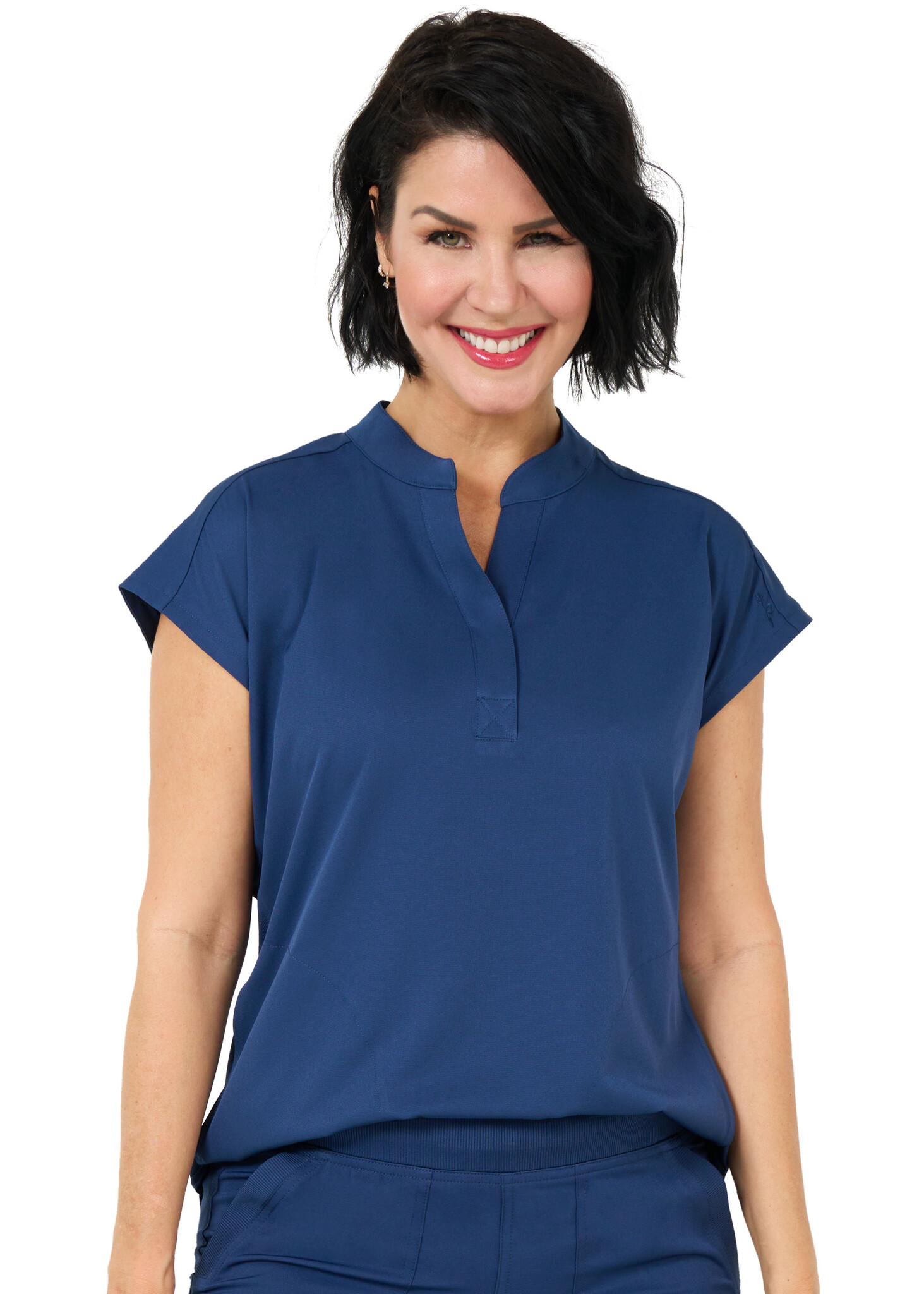 Switch up your style and get a fresh easygoing look with our dolman sleeve scrub top.