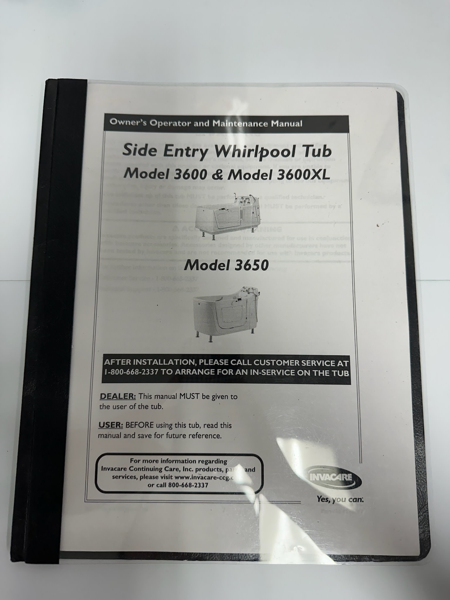 Invacare Side-Entry Whirlpool Tub Owner's Manual
