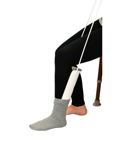 We love the Plastic Sock Aid because it easily gets the socks on your feet without having to bend, strain the back, or ask for help ... and that's all good.