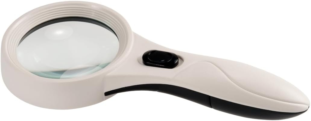 A lightweight handheld 4x magnifier with 6 LED lights for clear, bright viewing. Perfect for reading, crafts, and detailed work—compact, durable, and easy to use anywhere.