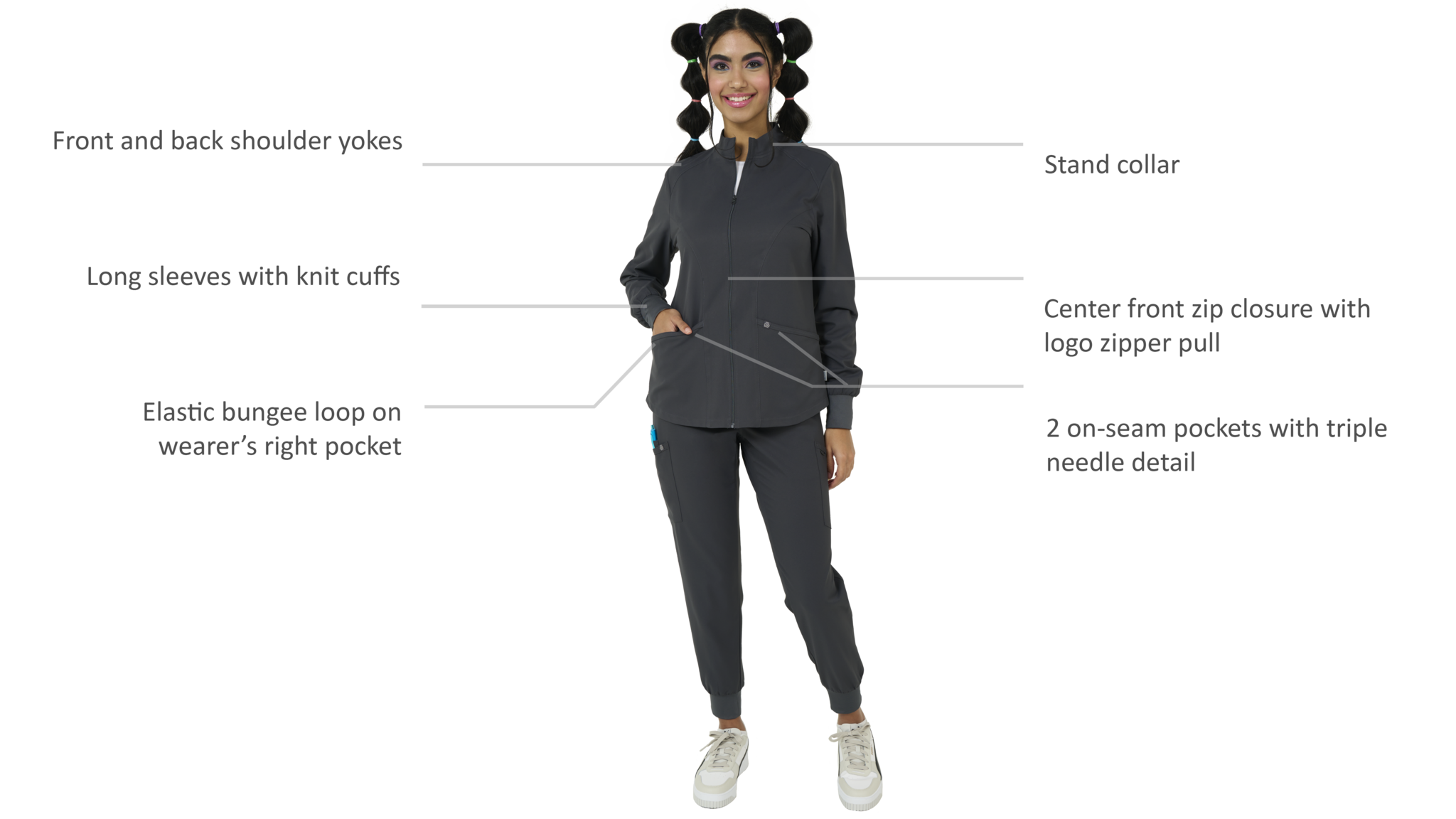 Amp up your style with this ultra-cool warm up scrub jacket.