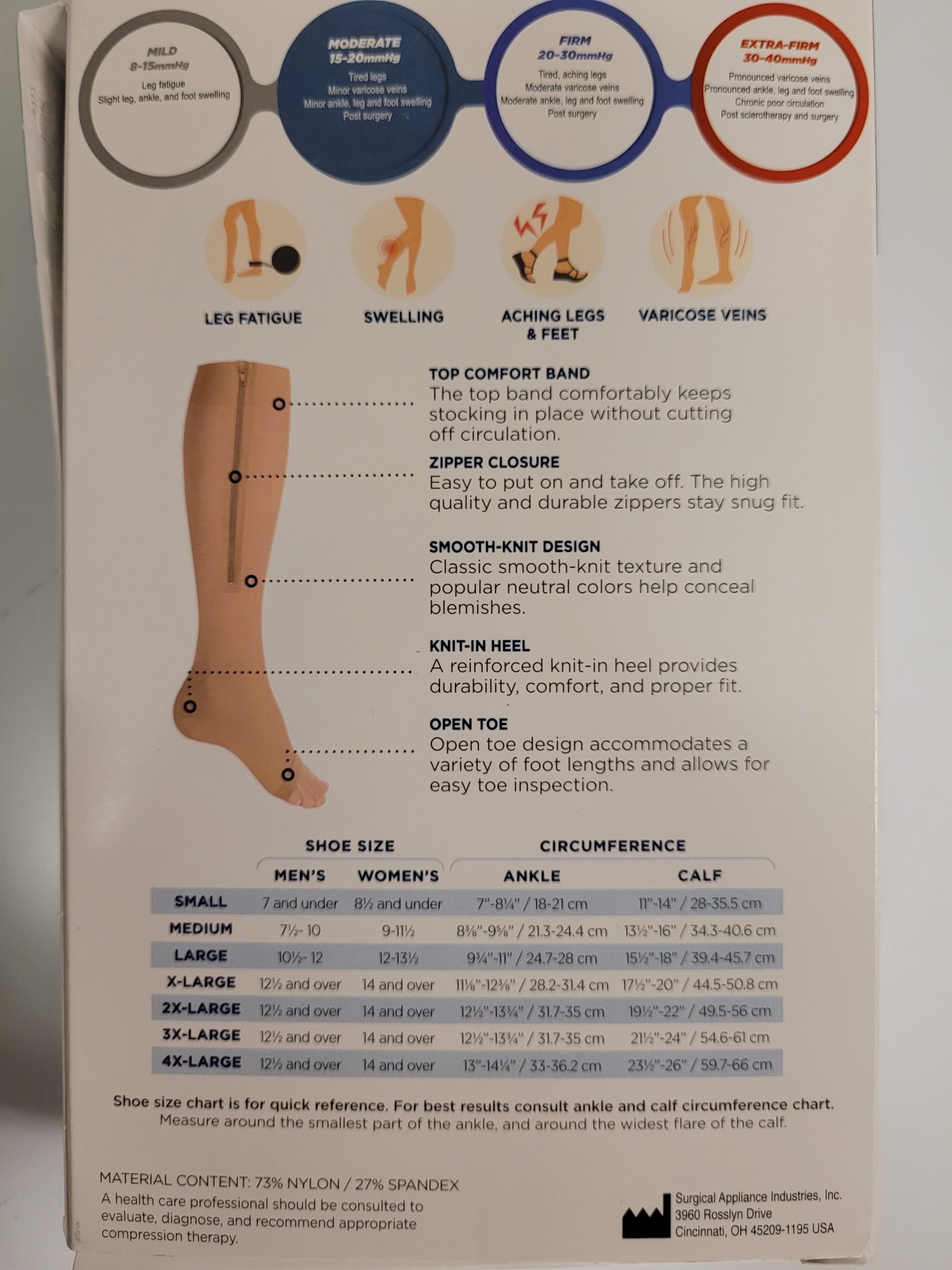 Designed to help relieve moderate conditions associated with poor circulation. The open toe feature allows for easy toe inspection and permits one standard size to fit a variety of foot dimensions.