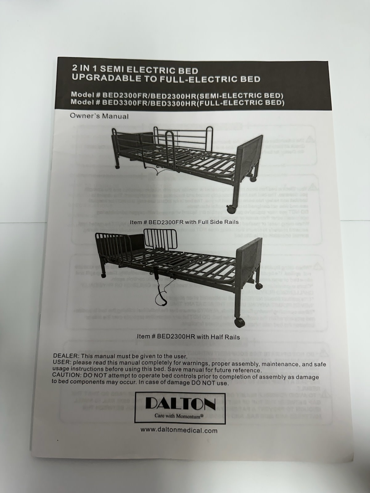 Dalton Medical - Used Dalton 2 IN 1 Semi-Electric Bed Owner's Manual