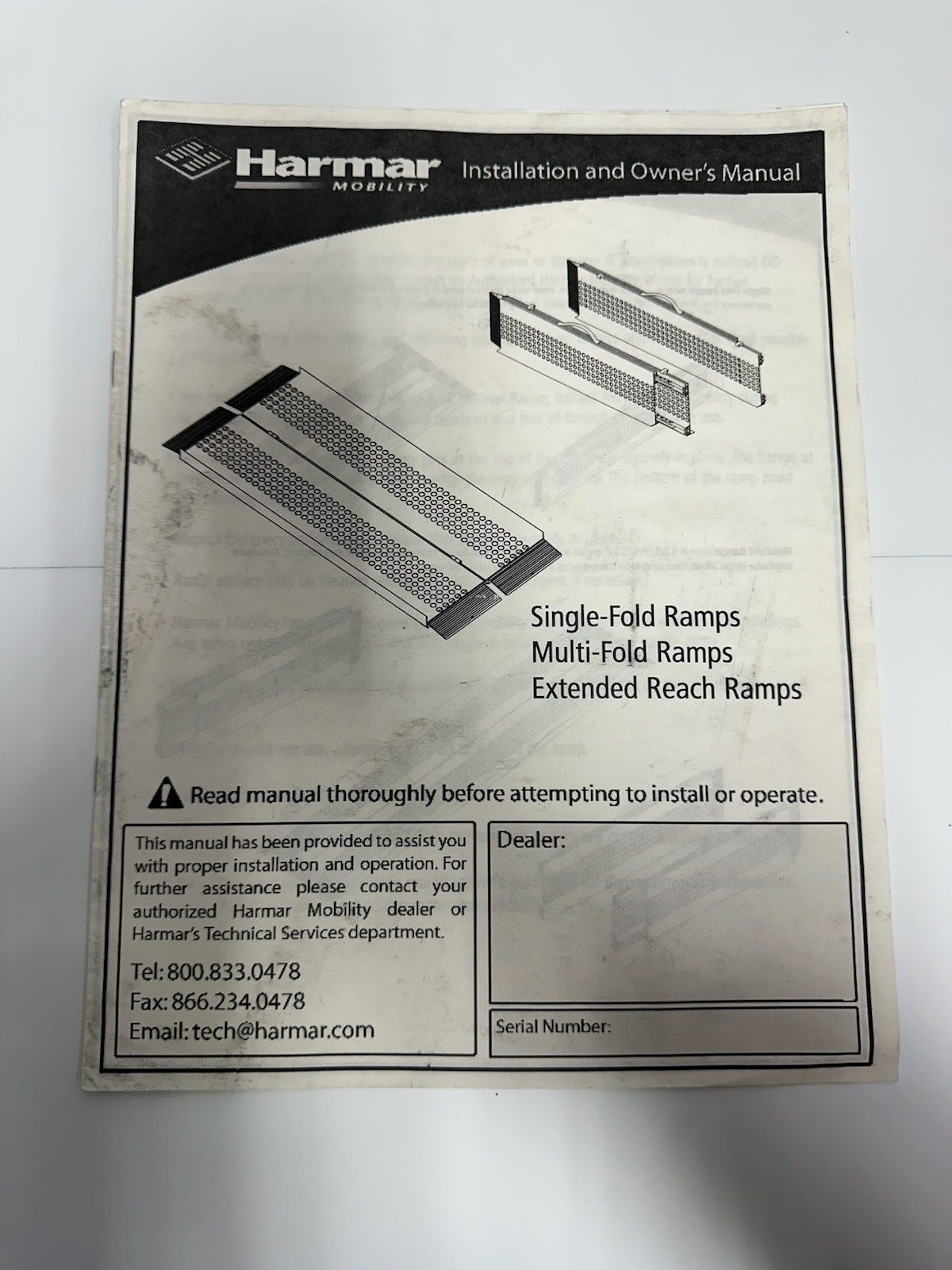 Used Harmar Installation and Owner's Manual for Single-Multi and Extended Reach Ramps