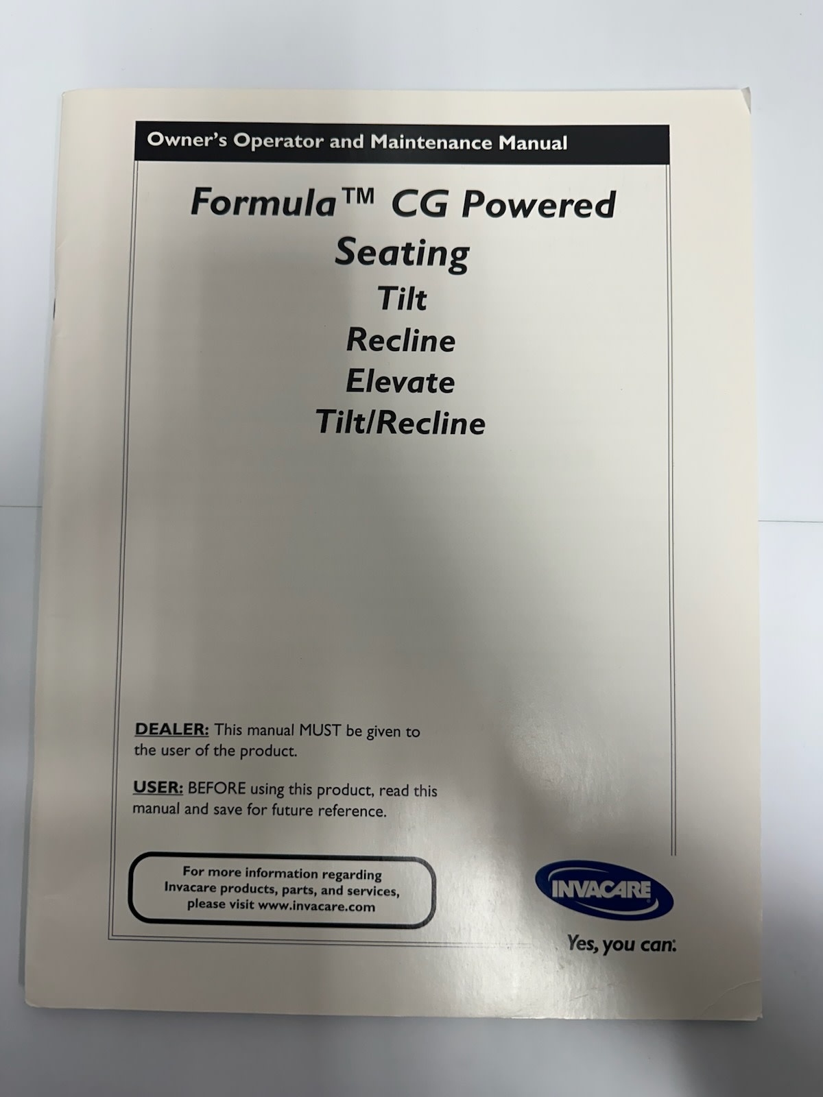 Invacare - Used Invacare Owner's Manual for Formula CG Powered Lift Chairs