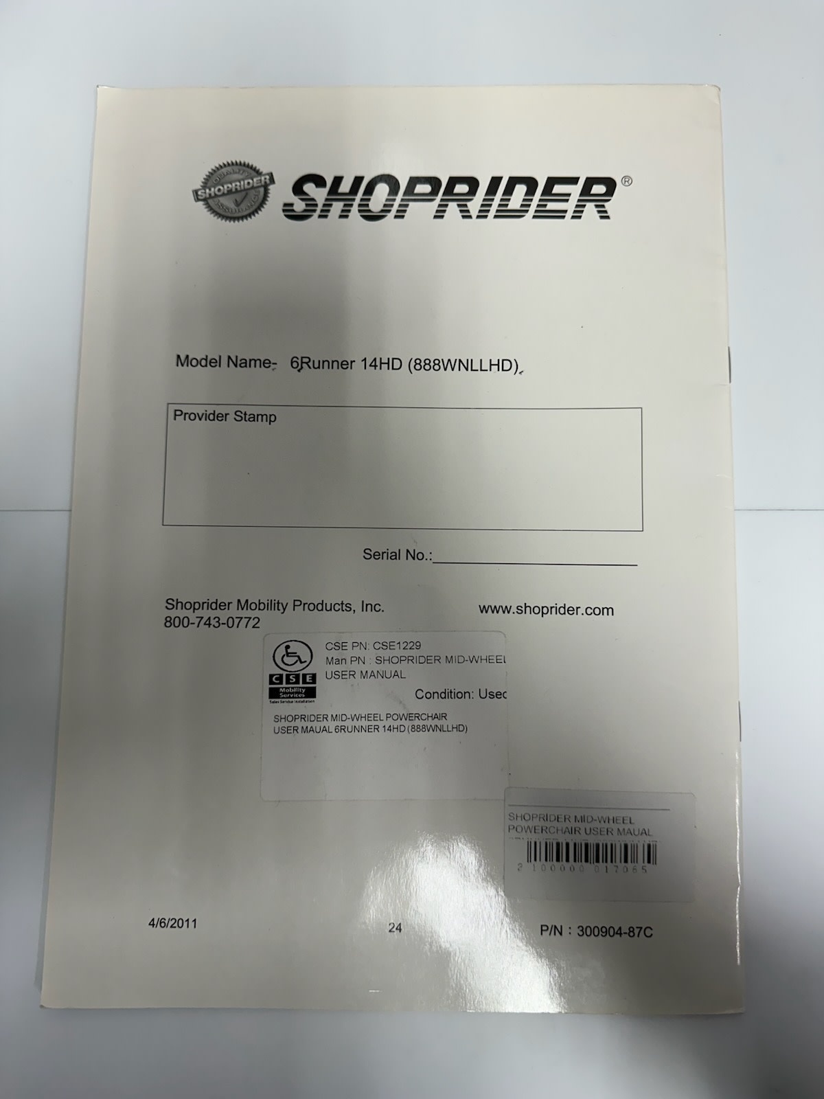 Shoprider - Used Manual for Shoprider Mid-Wheel Powerchair