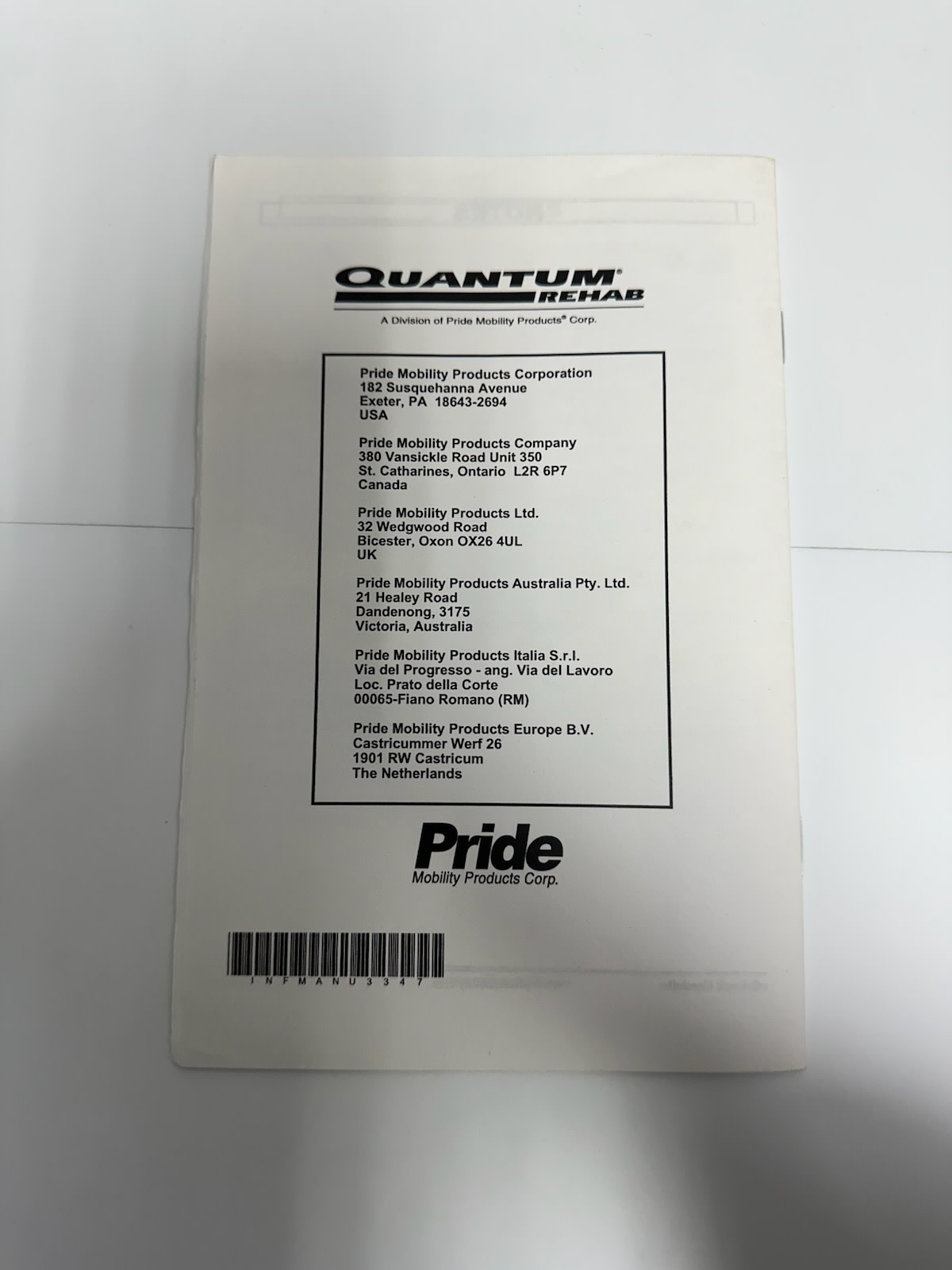 Used Owner's Manual for Pride Mobility Q-Logic Joystick Controller
