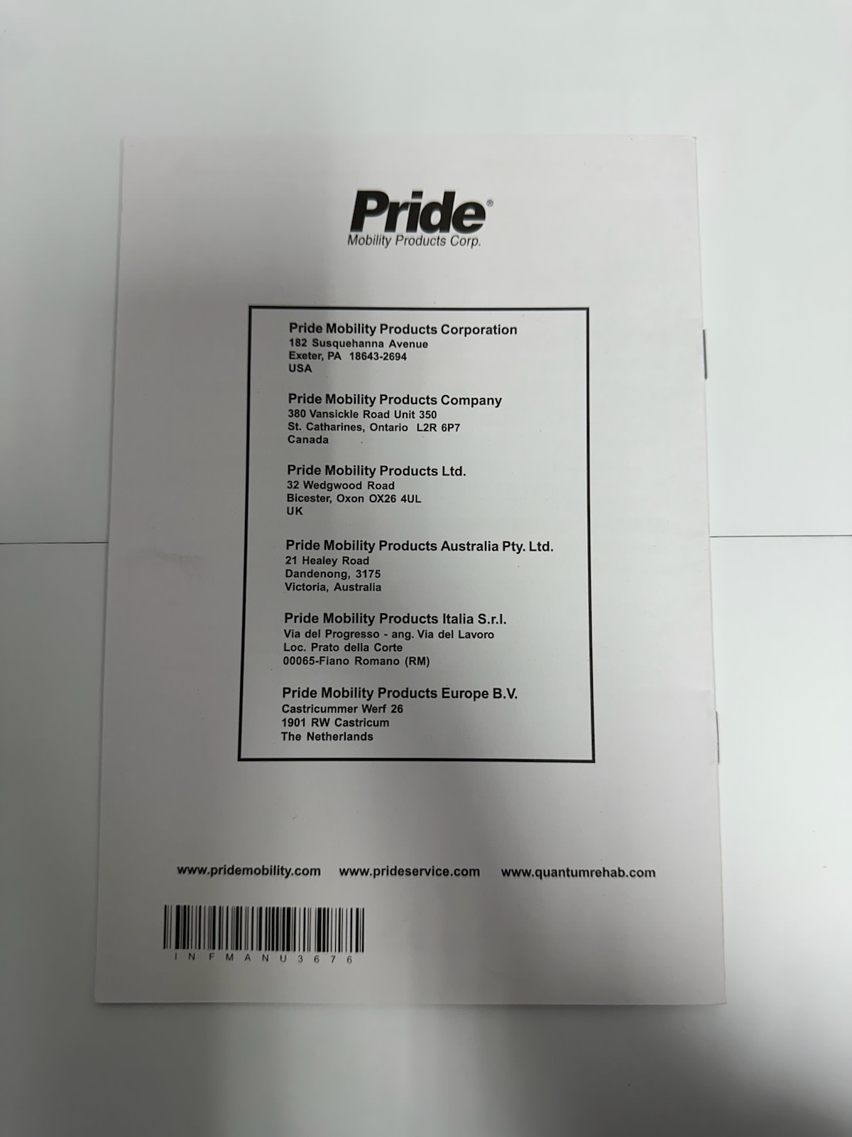 Pride Mobility - Used Pride INFMANU3676 Owner's Manual Basic Operation Instructions Booklet for Dynamic Controllers