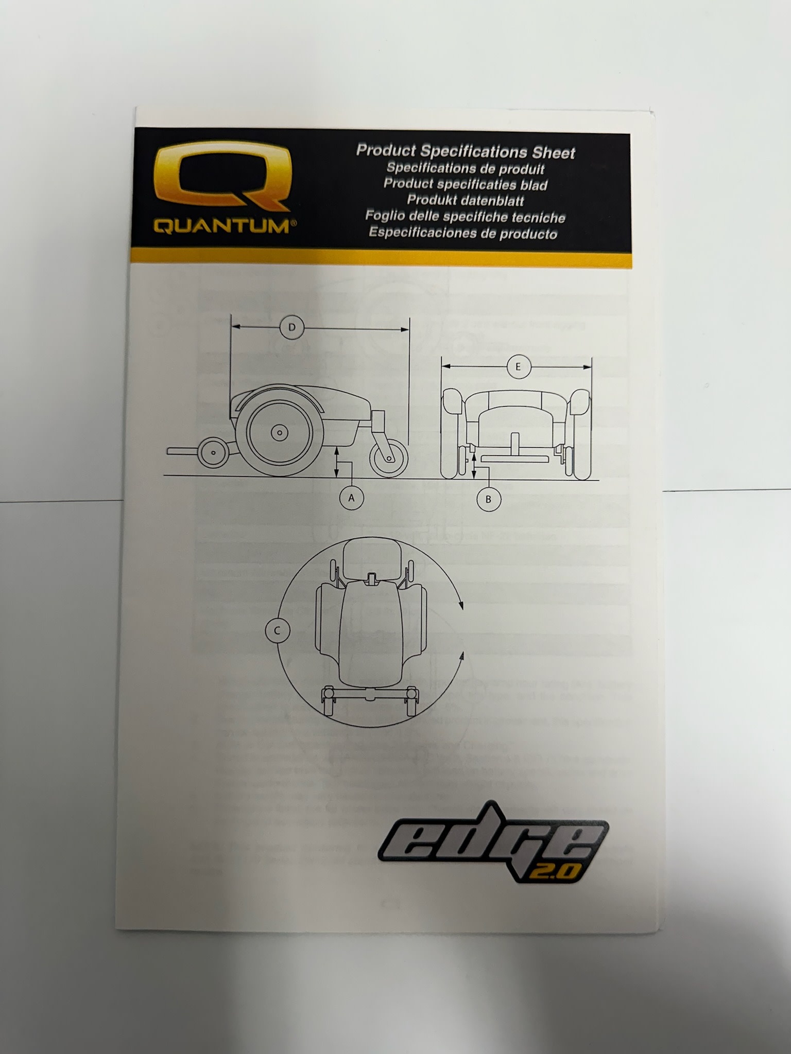 Used Product Specifications Sheet for Pride Quantum Edge 2.0 Power Chair